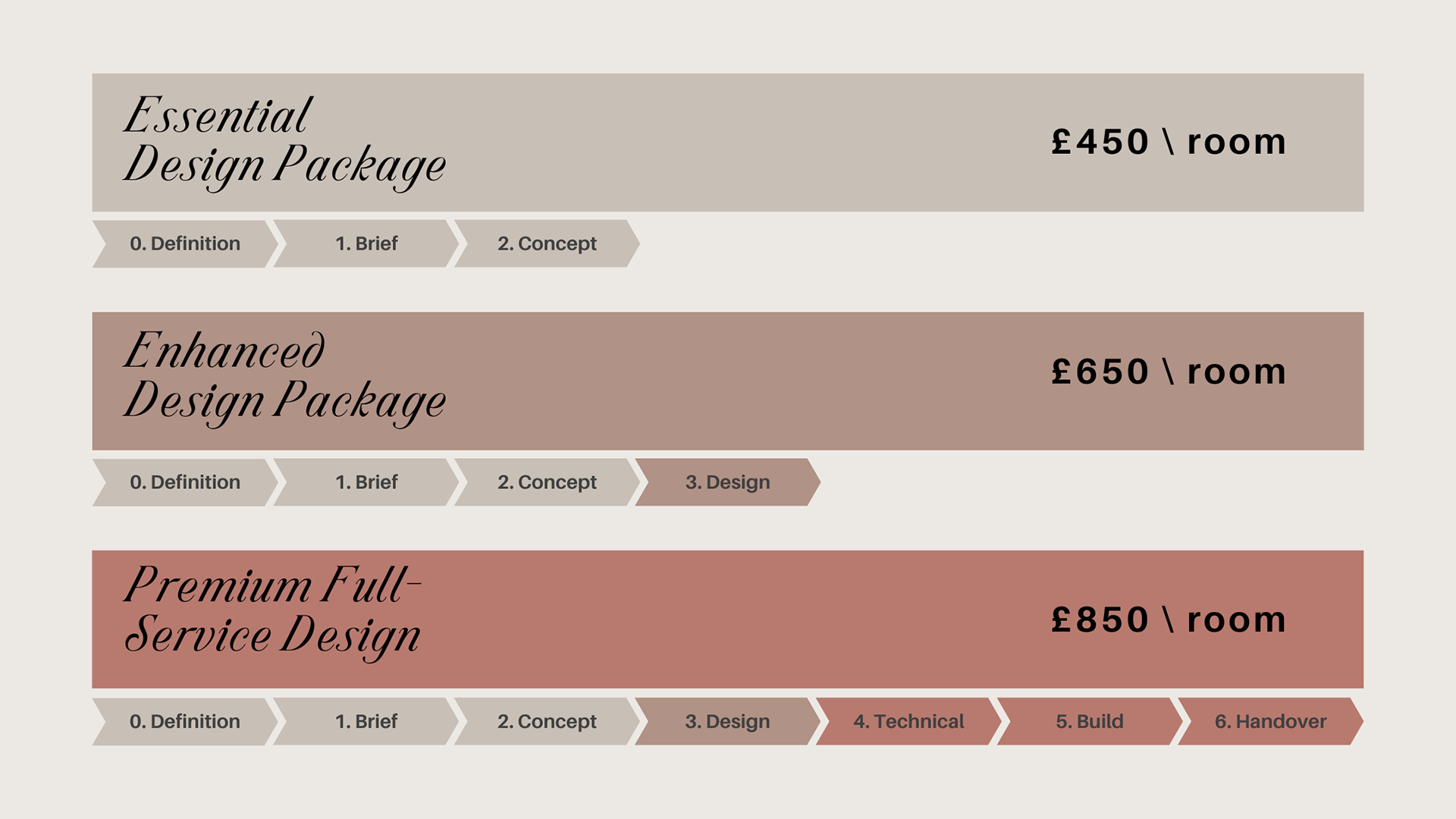 Our framework shows each stage of your project and the deliverables you’ll receive at every step. This helps you see exactly what’s included in each package tier and how your home will come together.